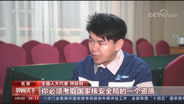 全國人大代表師延財(cái)是“華龍一號”上的“核級焊工”。對于技術(shù)工人如何才能讓自己的技術(shù)水平更進(jìn)一步?師延財(cái)通過自己的經(jīng)歷表示,只要在自己的崗位上沉住氣,有信念,有熱愛,就能一步一步地成長。(2023-3-9)