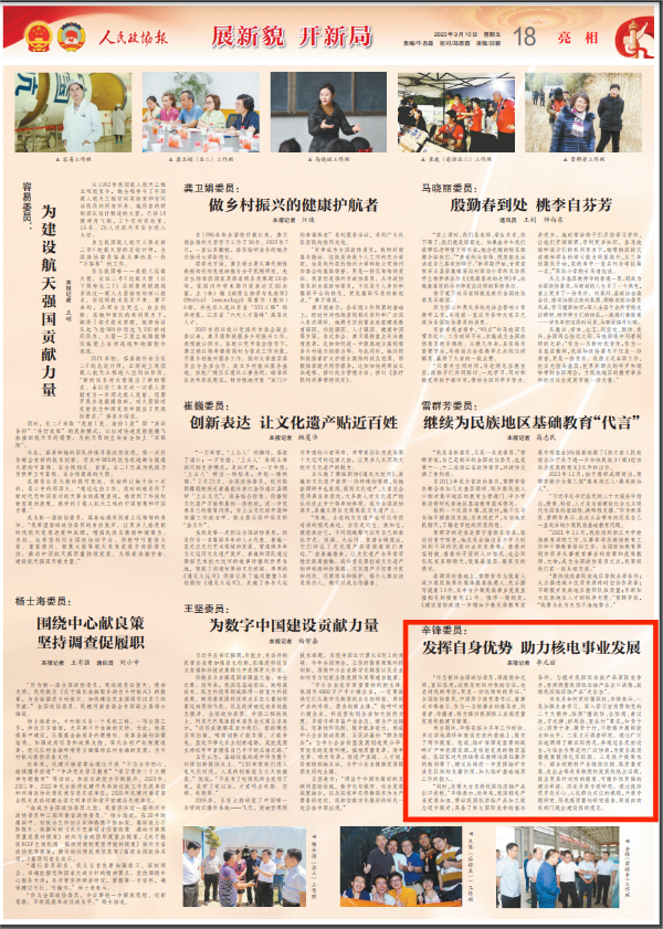 兩會(huì)專題 | 《人民政協(xié)報(bào)》:辛鋒委員:發(fā)揮自身優(yōu)勢(shì) 助力核電事業(yè)發(fā)展