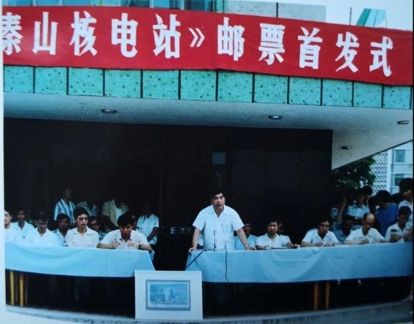 ▲ 趙宏在《秦山核電站》郵票首發(fā)儀式上