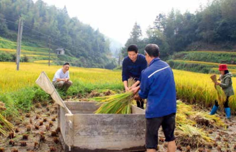 在湖南省邵陽市新寧縣黃金瑤族鄉(xiāng)二聯(lián)村,中核集團下屬湖南新華供電有限公司選派的駐村工作隊員正在幫助鄉(xiāng)親們收水稻。