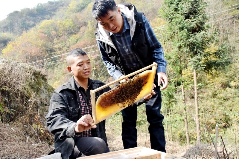 2019年春節(jié)結束,黎金意感到格外的迷茫,雙親日漸年邁,自己也年近不惑,繼續(xù)外出打工不是長久之計,留在家中亦無謀生手藝,正當他茫然無措之際,剛退伍回鄉(xiāng)的李耀文找到了他,“最近中核集團給咱村扶持了一批蜂種,還有企業(yè)配套進行技術培訓,你別出去打工了,跟我一起在家門口干吧!”